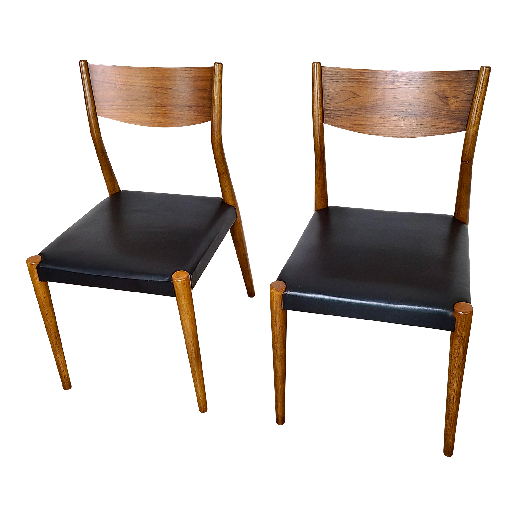 West Elm Tate Dining Chairs Black Leather Walnut A Pair Chairish